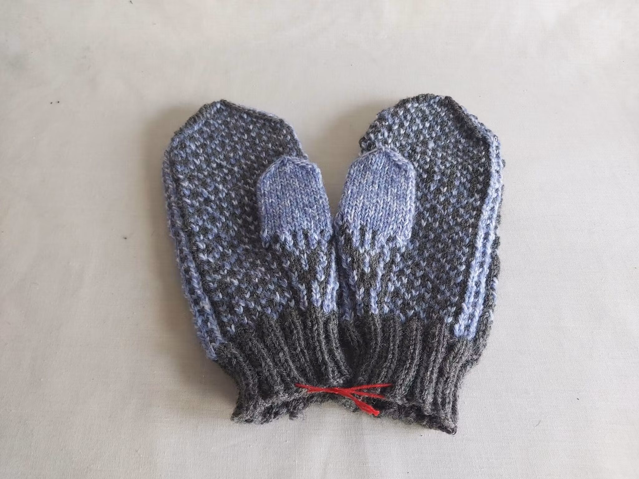 Stickade vantar med motiv i två färger.